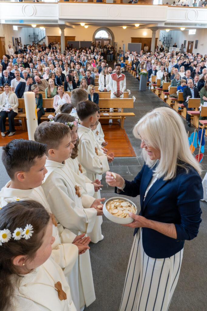 Wir freuen uns, mit den Kommunionkindern, ihren Begleitpersonen und Familien und allen Pfarreiangehörigen dieses Fest zu feiern.